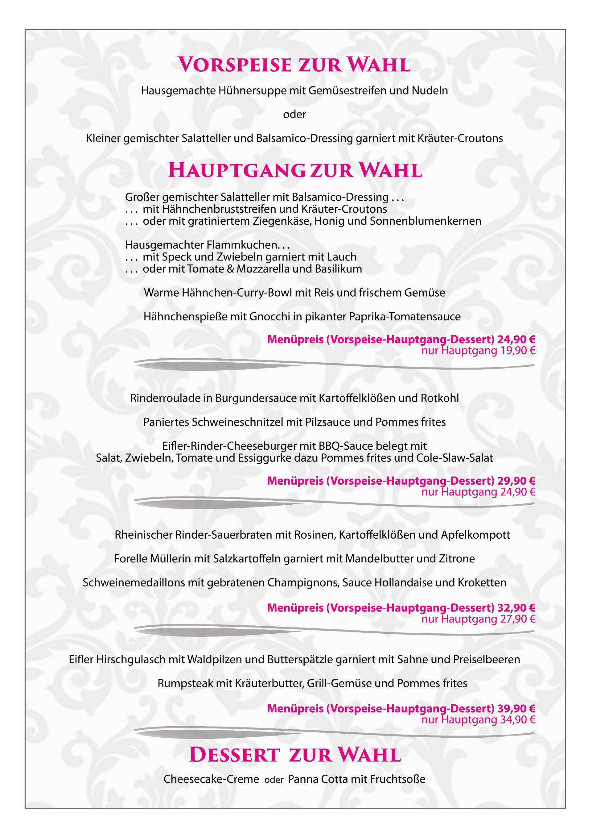 19,90 € pro Person, an Festtagen für 26,90 € inklusive Sekt.